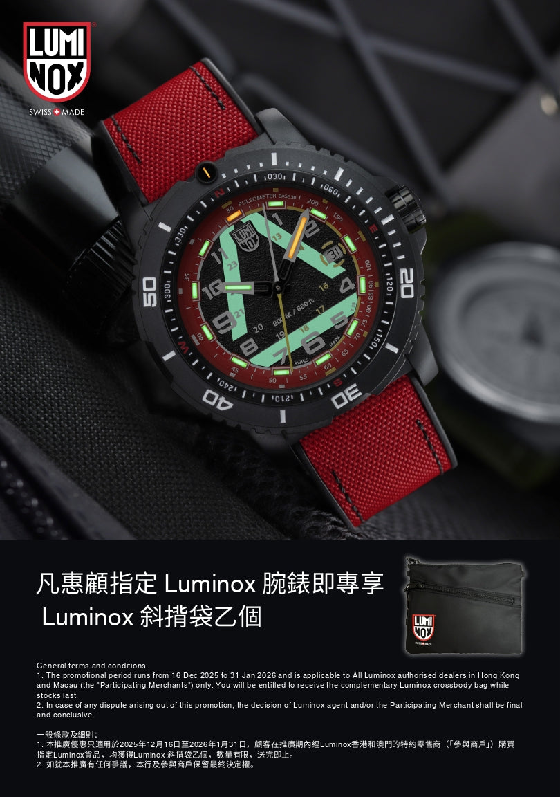 凡惠顧指定 Luminox 腕錶即專享Luminox 斜揹袋乙個,送完即止。