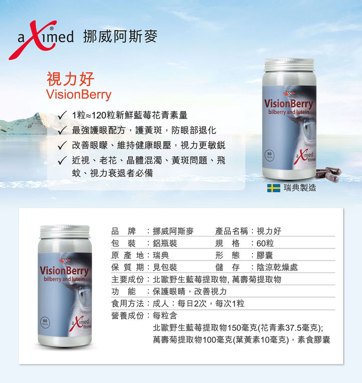 aXimed 挪威阿斯麥 - 視力好 (60粒) (Retail price: $500)