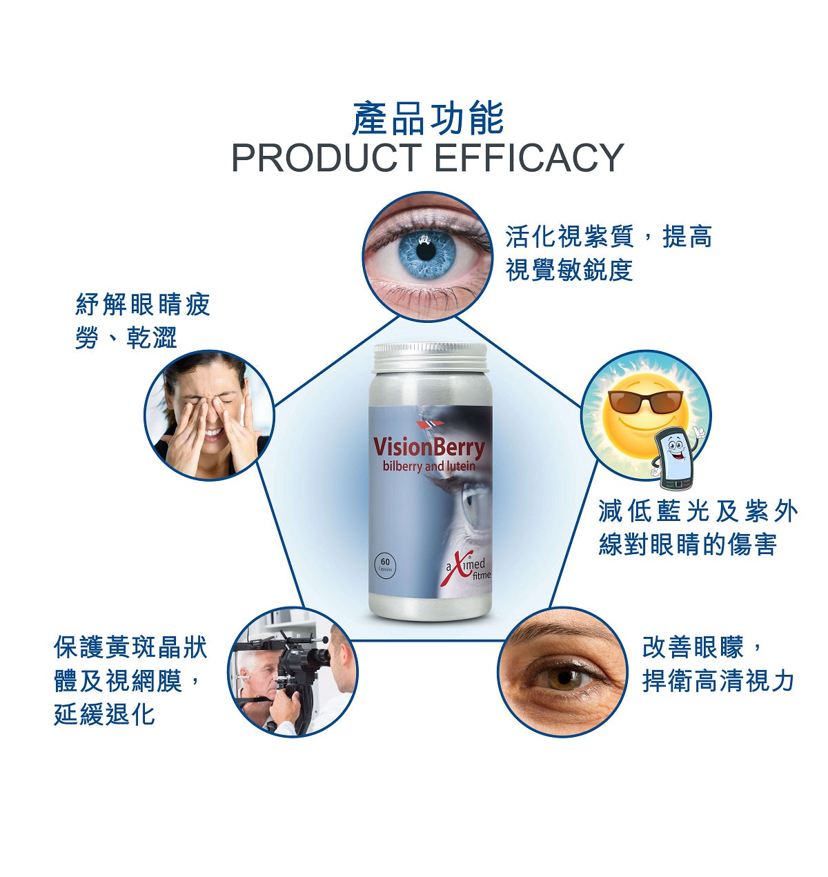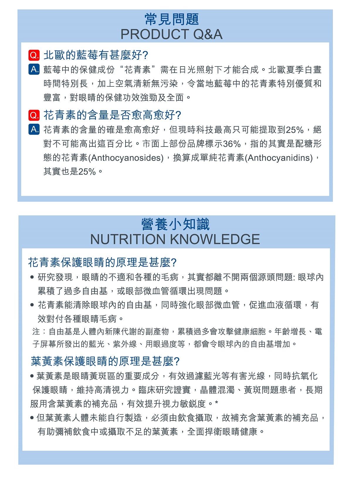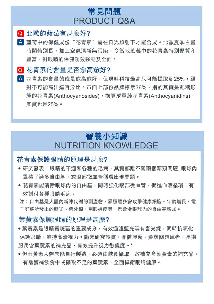 1. 最高濃度花青素,配合葉黃素護黃斑區