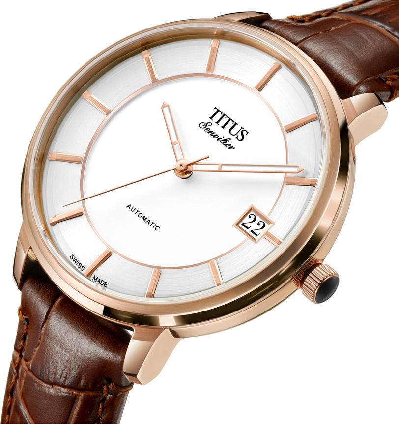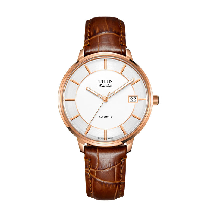 Sonvilier瑞士製三針日期顯示自動機械皮革腕錶 (W06-03181-003)
